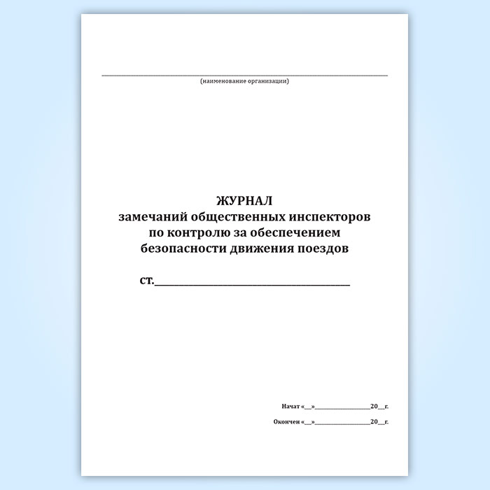 Журнал замечаний общественных инспекторов по контролю за обеспечением безопасности движения поездов в Обнинске купить