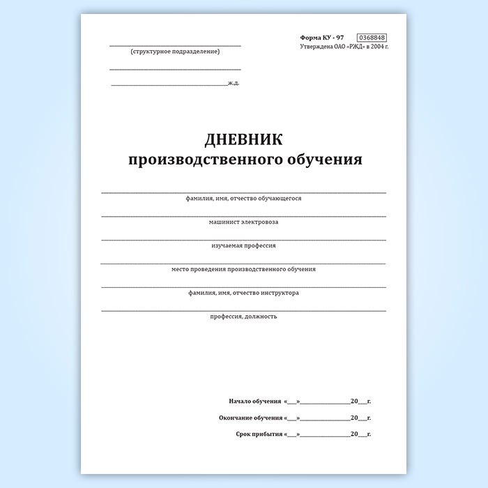 Дневник производственного обучения (форма КУ-97) в Обнинске купить