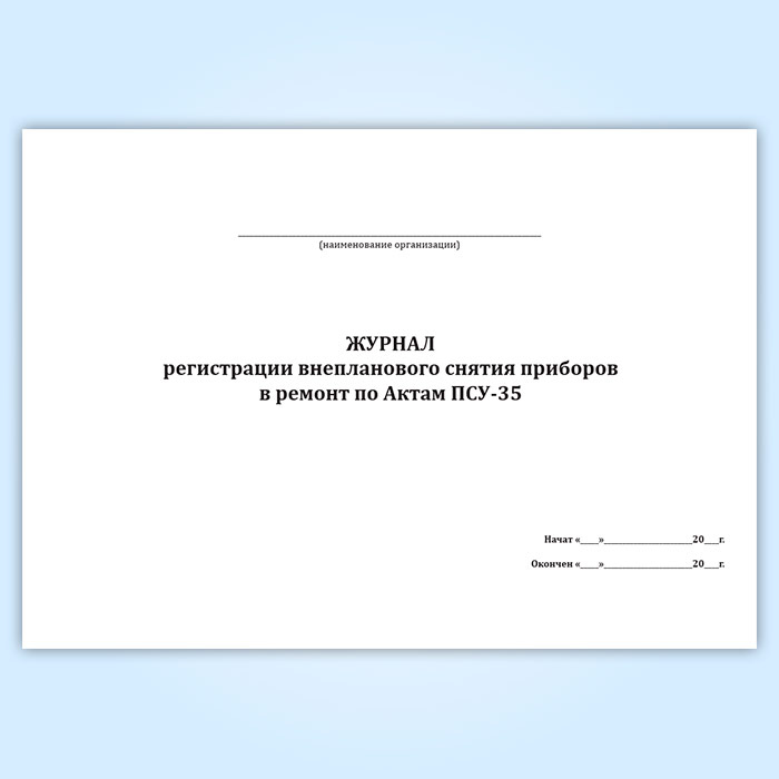 Журнал регистрации внепланового снятия приборов в ремонт по Актам ПСУ-35 в Обнинске купить