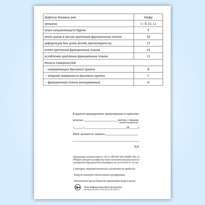 Журнал учета результатов осмотра и дефектоскопирования боковых рам тележек грузовых вагонов в Обнинске купить
