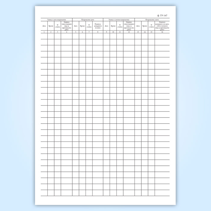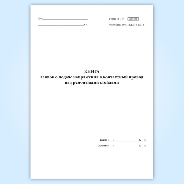 Книга заявок о подаче напряжения в контактный провод над ремонтными стойлами (форма ТУ-147) в Обнинске купить