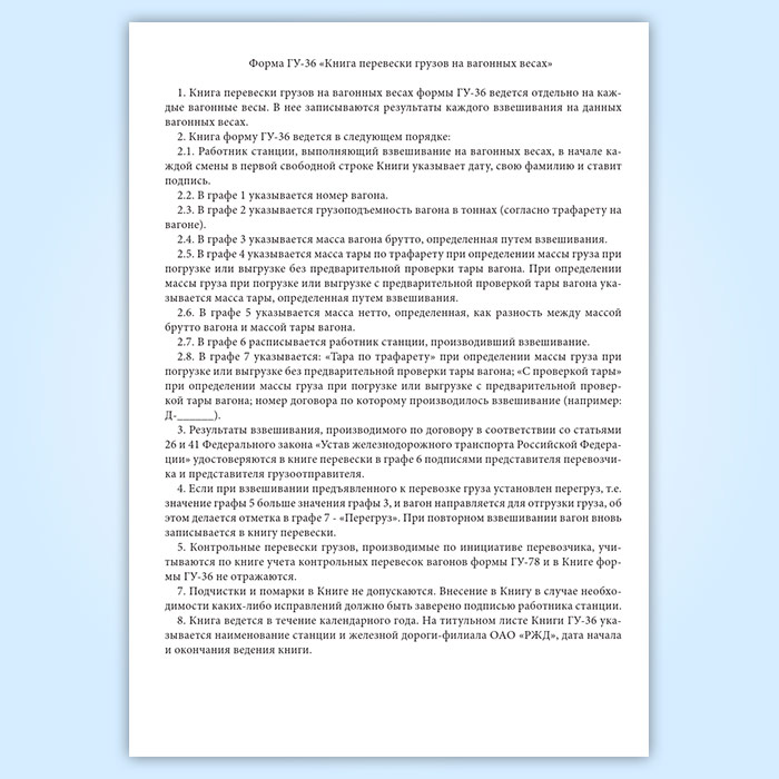Книга перевески грузов на вагонных весах (форма ГУ-36) в Обнинске купить