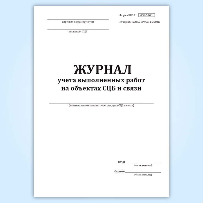 Журнал учета выполненных работ на объектах СЦБ и связи (форма Шу-2) в Обнинске купить