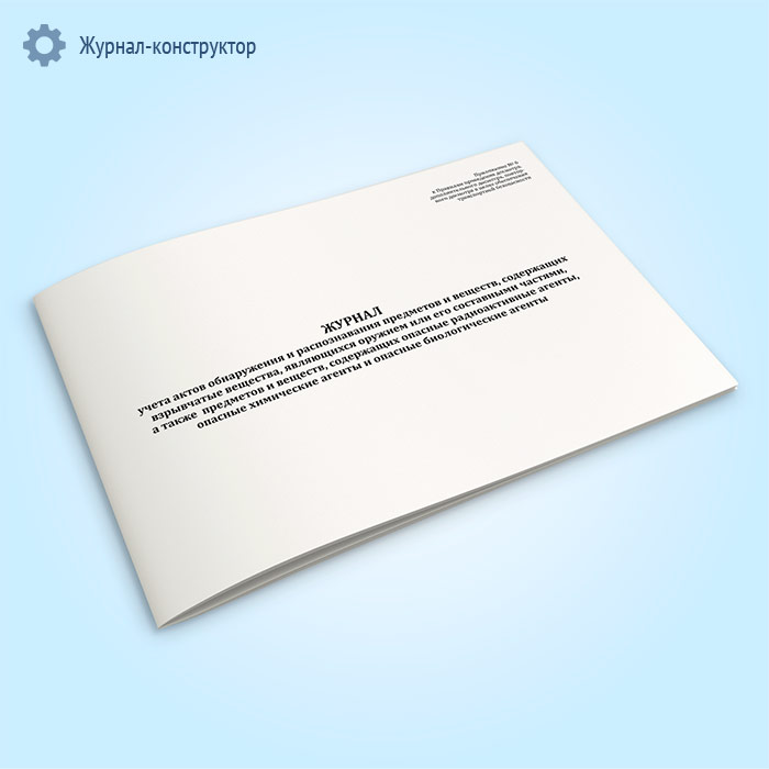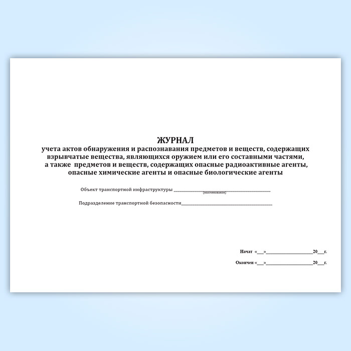 Журнал учета актов обнаружения и распознавания предметов и веществ, содержащих взрывчатые вещества, являющихся оружием или его составными частями, а также предметов и веществ, содержащих опасные радиоактивные агенты, опасные химические агенты и опасные биологические агенты в Обнинске купить