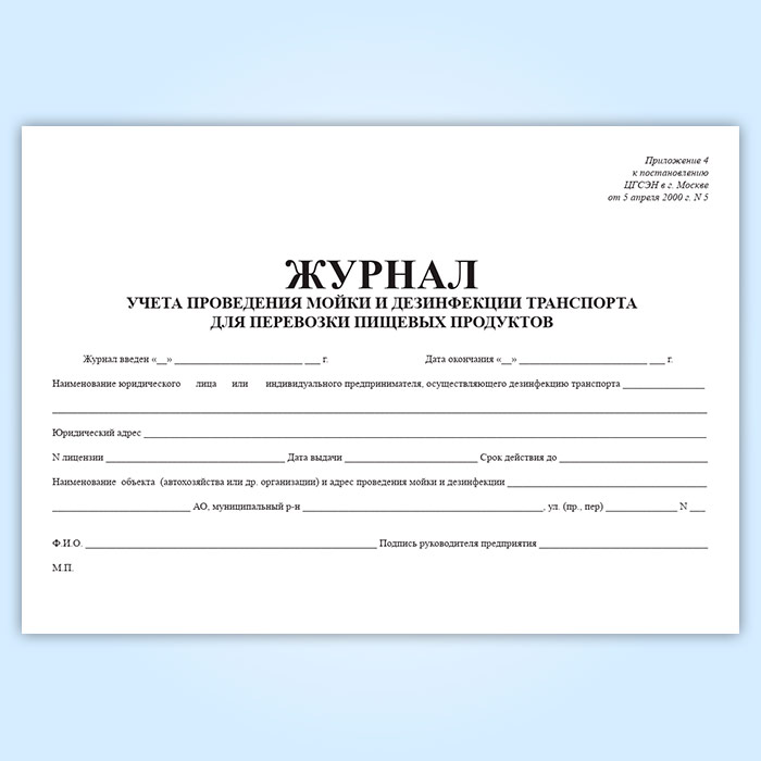 Журнал учета проведения мойки и дезинфекции транспорта для перевозки пищевых продуктов в Обнинске купить