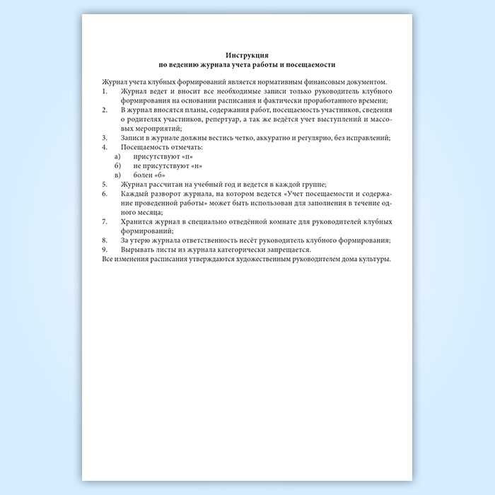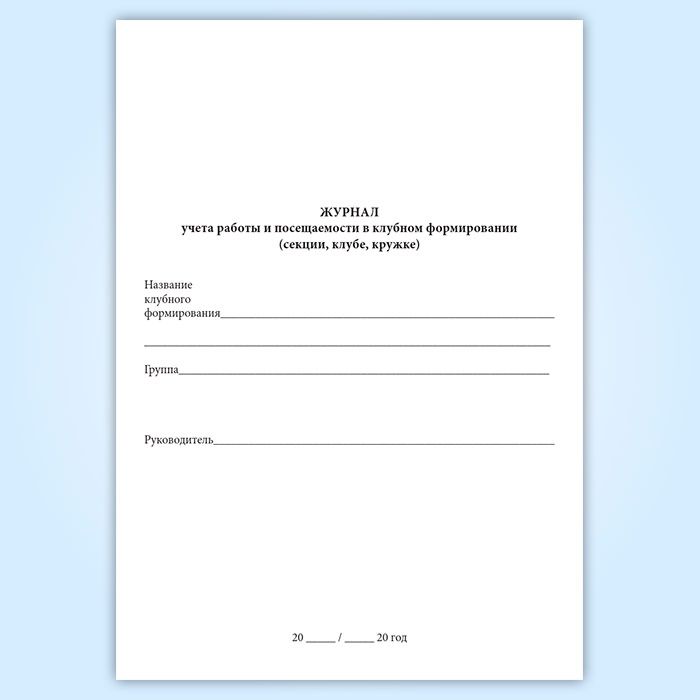 Журнал учета работы и посещаемости в клубном формировании (секции, клубе, кружке) в Обнинске купить