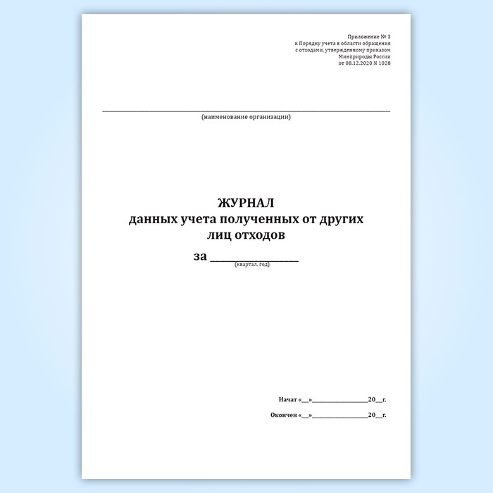 Журнал данных учета полученных от других лиц отходов в Обнинске купить