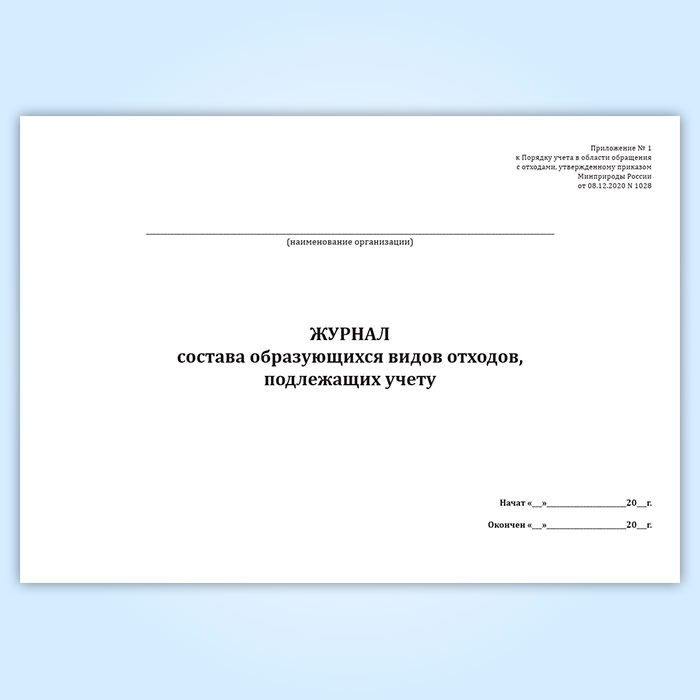 Журнал состава образующихся видов отходов, подлежащих учету в Обнинске купить