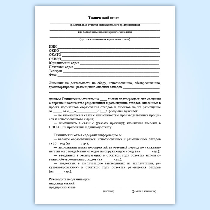 Технический отчет о неизменности производственного процесса, используемого сырья и об обращении с отходами в Обнинске купить