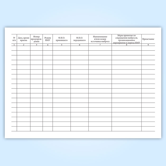 Журнал регистрации мероприятий по сокращению выбросов в период НМУ в Обнинске купить