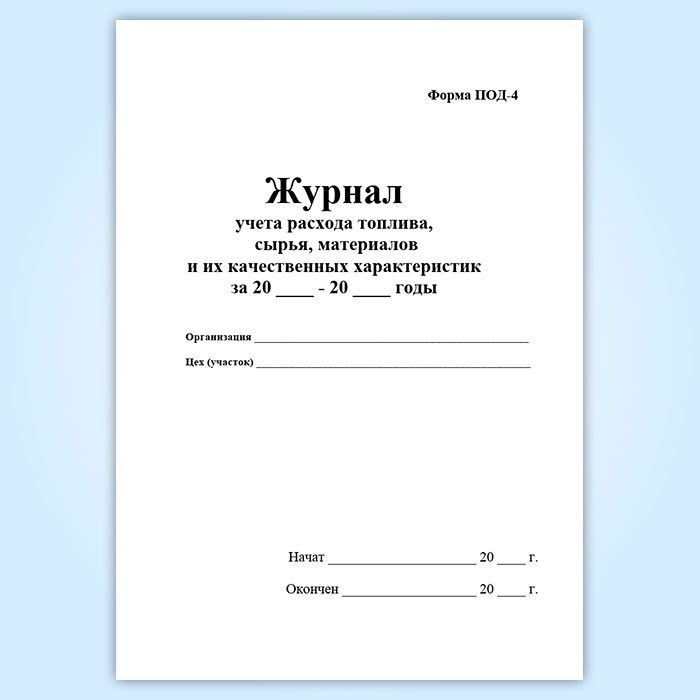 Журнал учета расхода топлива, сырья, материалов и их качественных характеристик (форма ПОД-4) в Обнинске купить