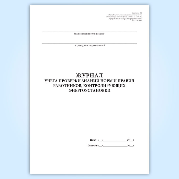 Журнал учета проверки знаний норм и правил работников, контролирующих энергоустановки в Обнинске купить