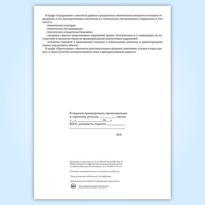 Технический журнал по эксплуатации гидротехнического сооружения в Обнинске купить