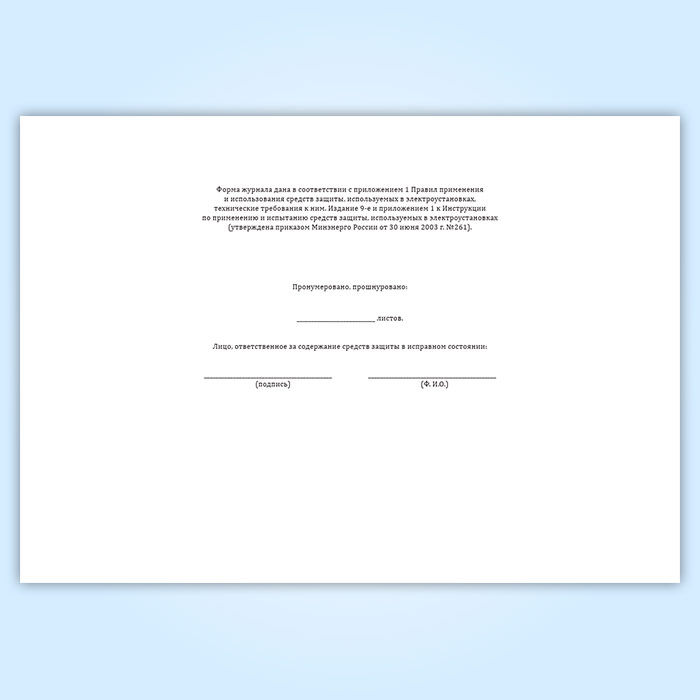 Журнал учета и содержания средств защиты (используемых в электроустановках) в Обнинске купить