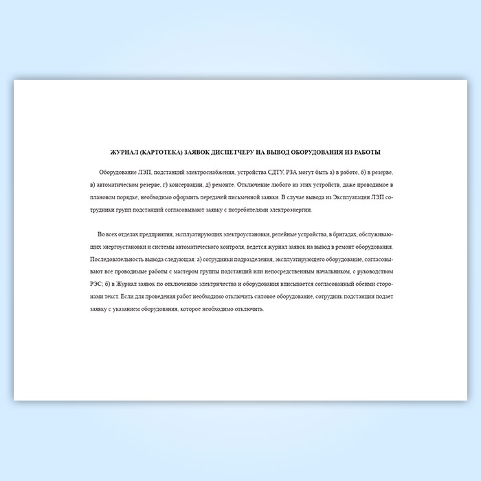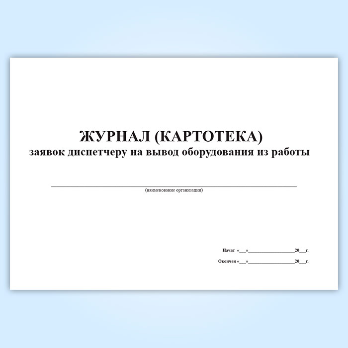 Журнал (картотека) заявок диспетчеру на вывод оборудования из работы в Обнинске купить