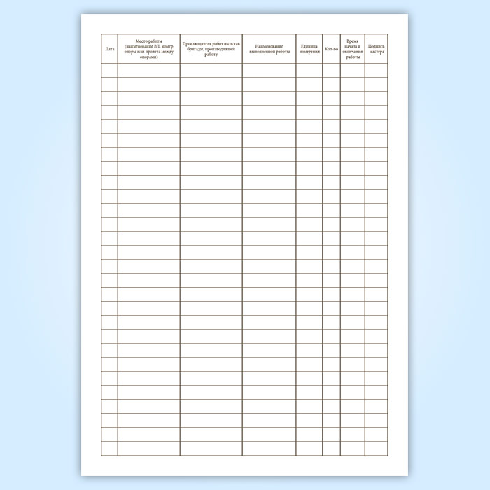 Журнал учета работ на ВЛ электропередачи напряжением 0,38-20 кВ в Обнинске купить