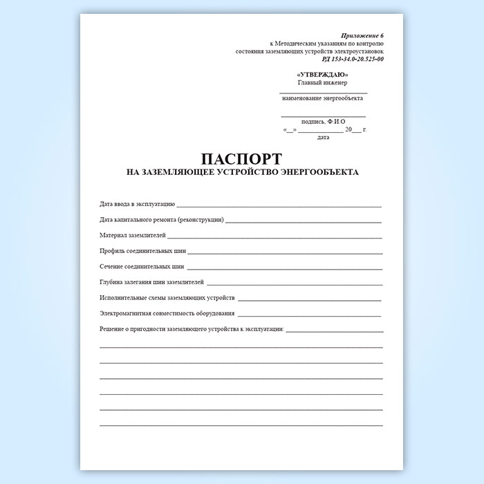 Паспорт на заземляющее устройство энергообъекта в Обнинске купить