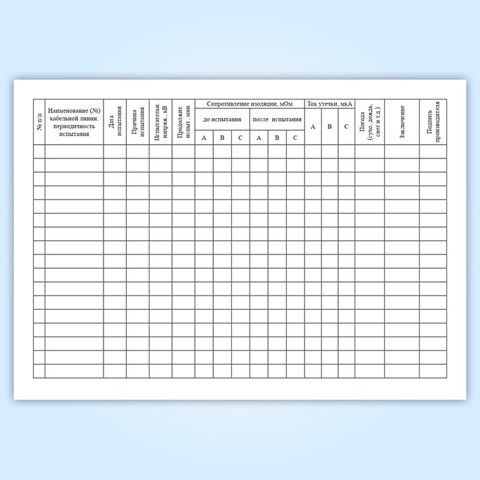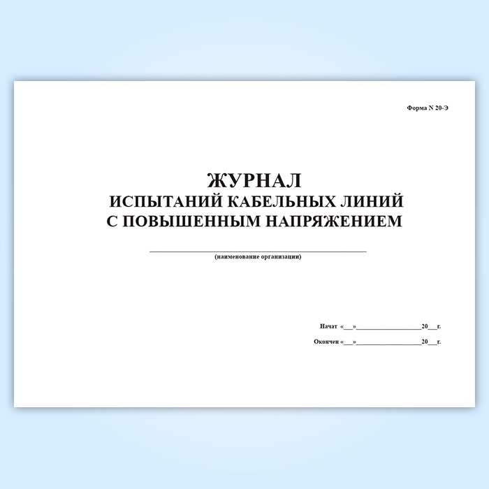 Журнал испытаний кабельных линий с повышенным напряжением (форма № 20-Э) в Обнинске купить