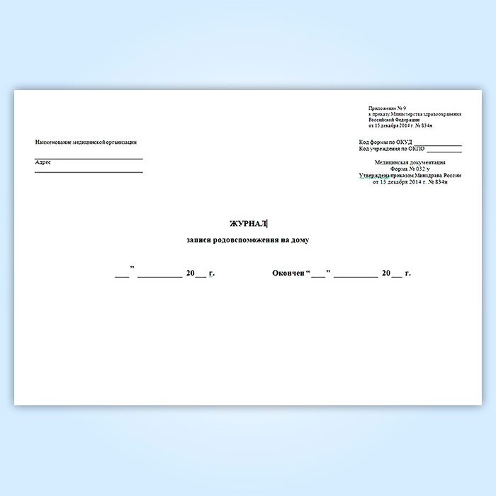 Журнал записи родовспоможения на дому (форма 032/у) в Обнинске купить