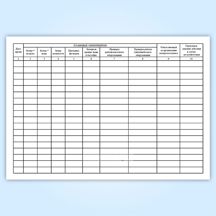Журнал плановых мероприятий по бассейну в Обнинске купить