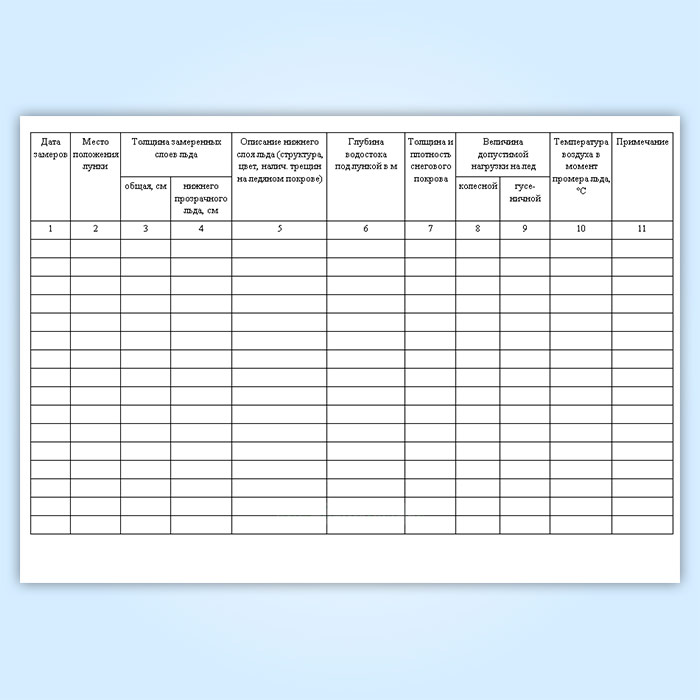 Журнал промеров толщины льда и определения грузоподъемности ледяного покрова в Обнинске купить