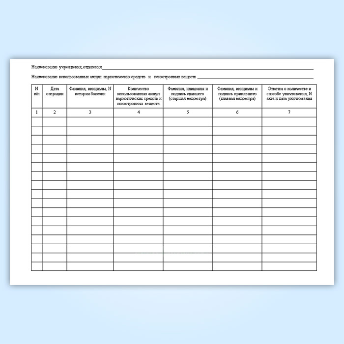 Журнал регистрации операций с использованными ампулами из-под наркотических средств и психотропных веществ у главной медицинской сестры стационарной медицинской организации в Обнинске купить