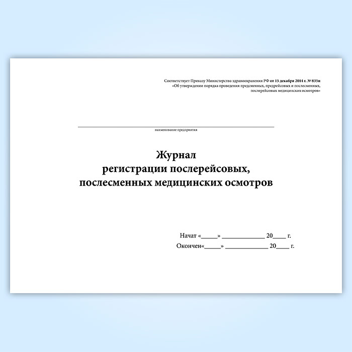 Журнал регистрации послерейсовых, послесменных медицинских осмотров в Обнинске купить