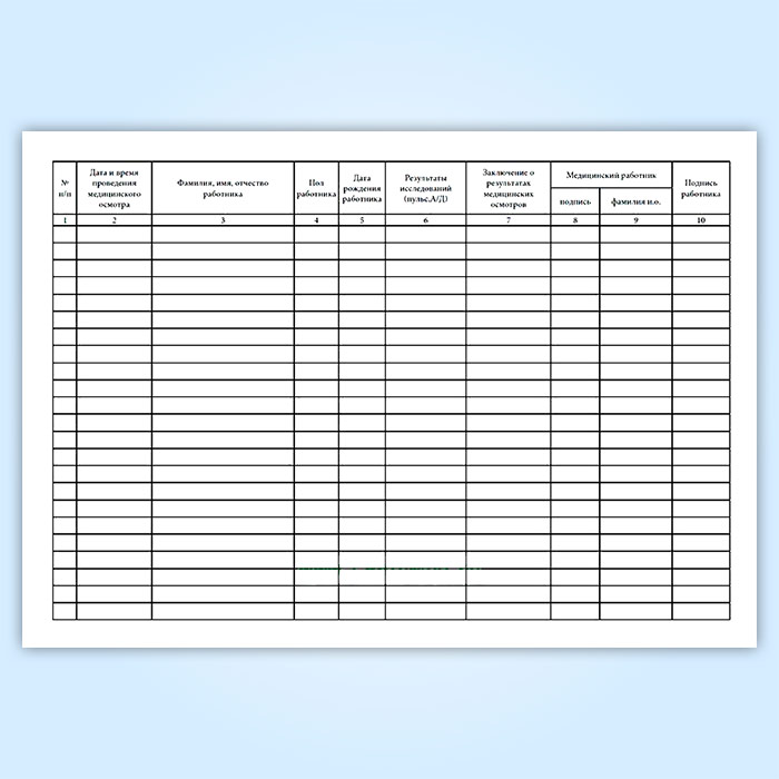 Журнал регистрации предрейсовых, предсменных медицинских осмотров (Приказ Минздрава РФ от 15 декабря 2014 г. N 835н) в Обнинске купить