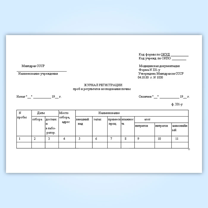 Журнал регистрации проб и результатов исследования почвы (форма № 331-у) в Обнинске купить