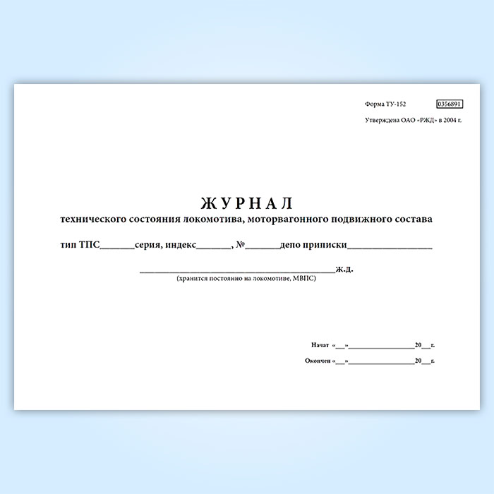 Журнал технического состояния локомотива, моторвагонного подвижного состава (форма № ТУ-152) в Обнинске купить