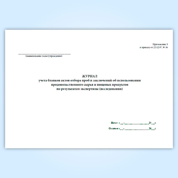 Журнал учета бланков отбора проб и заключений об использовании продовольственного сырья и пищевых продуктов в Обнинске купить