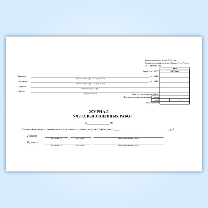 Журнал учета выполненных работ (форма КС-6а) в Обнинске купить