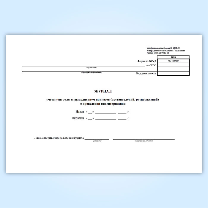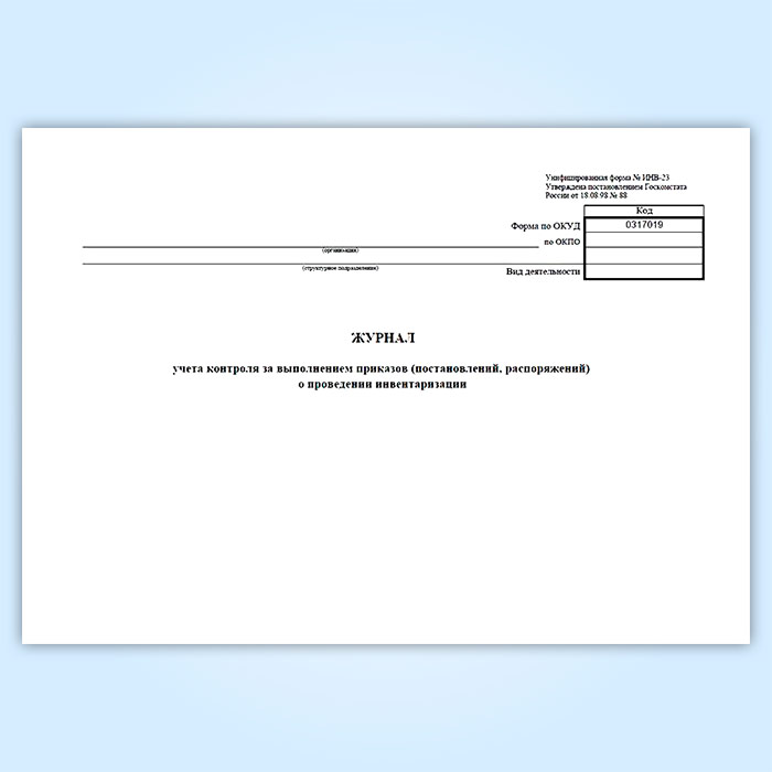 Журнал учета контроля за выполнением приказов (постановлений, распоряжений) о проведении инвентаризации (унифицированная форма ИНВ-23) в Обнинске купить