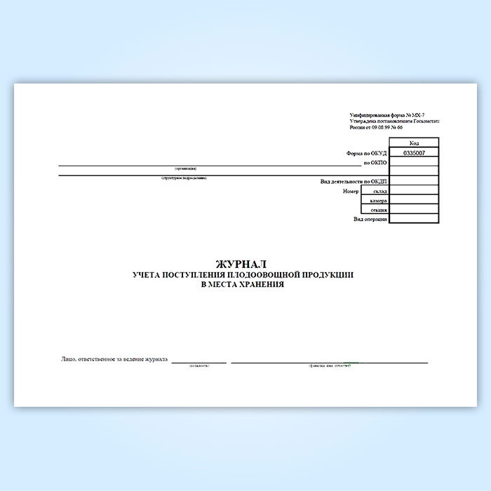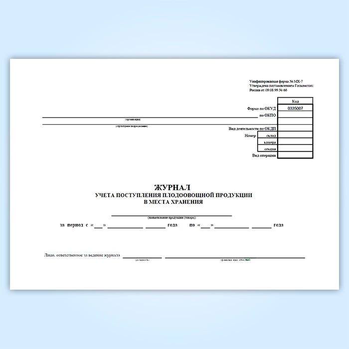 Журнал учета поступления плодоовощной продукции в места хранения (форма МХ-7) в Обнинске купить