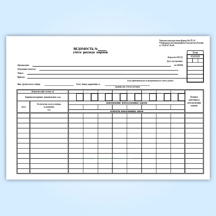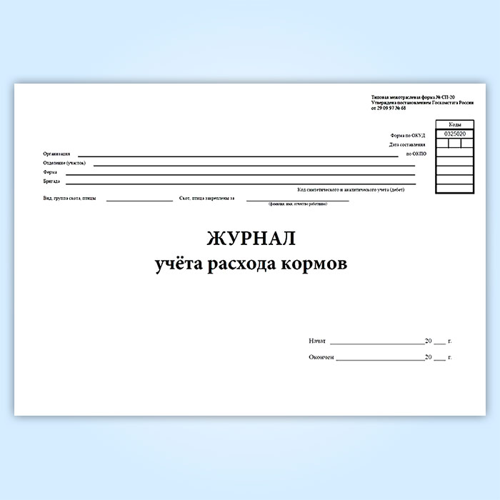 Журнал учета расхода кормов (форма № СП-20) в Обнинске купить