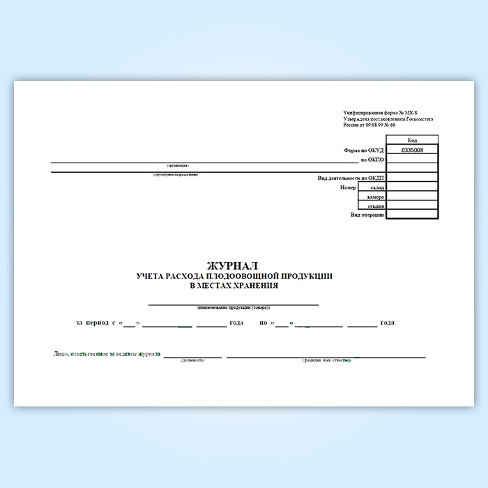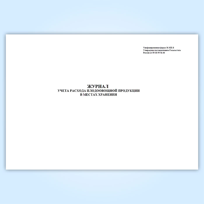 Журнал учета расхода плодоовощной продукции в местах хранения (форма МХ-8) в Обнинске купить