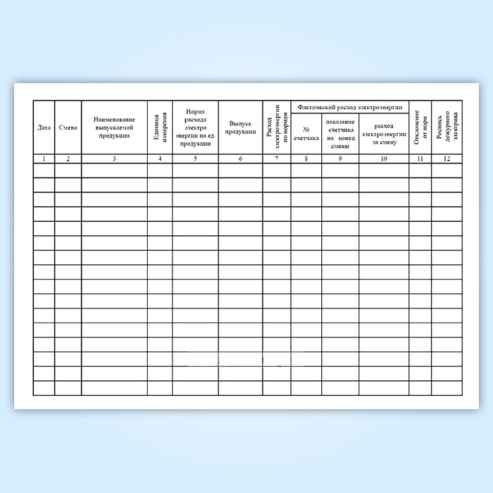 Журнал учета расхода электроэнергии (за смену) в Обнинске купить
