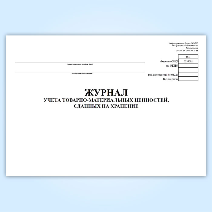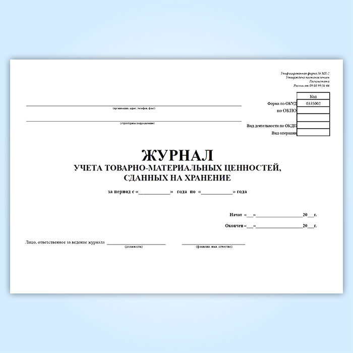 Журнал учета товарно-материальных ценностей, сданных на хранение (форма № МХ-2) в Обнинске купить
