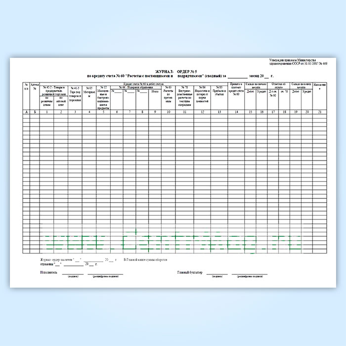 Журнал-ордер № 5 по кредиту счета № 60 «Расчеты с поставщиками и подрядчиками» (сводный) в Обнинске купить