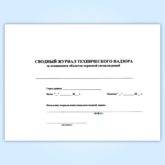 Сводный журнал технического надзора за оснащением объектов охранной сигнализацией в Обнинске купить