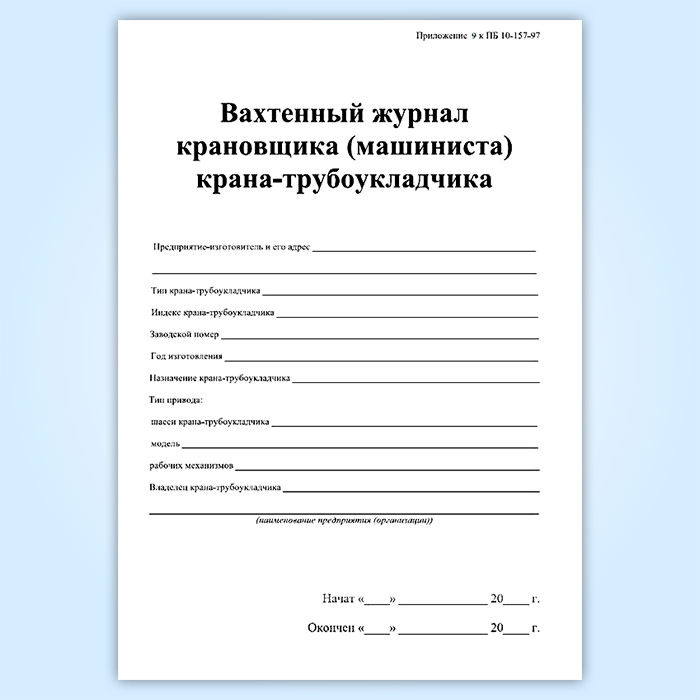Вахтенный журнал крановщика (машиниста) крана-трубоукладчика в Обнинске купить
