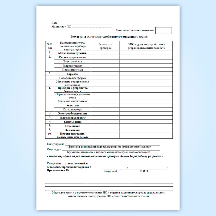 Вахтенный журнал машиниста автомобильного стрелового крана в Обнинске купить