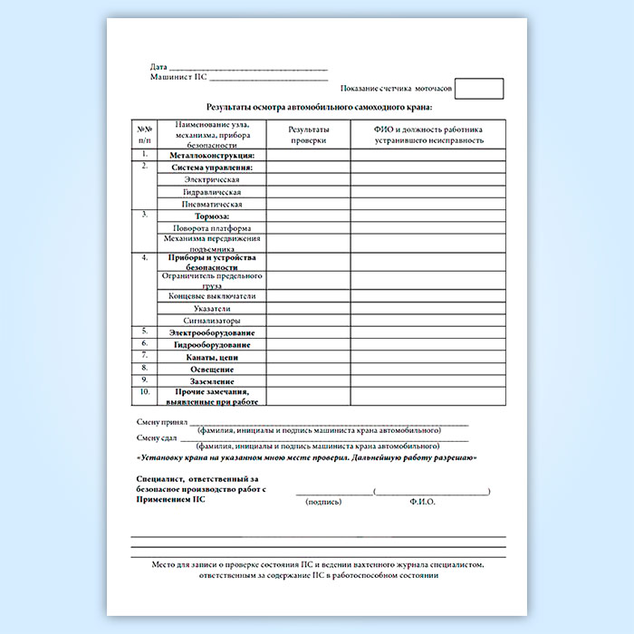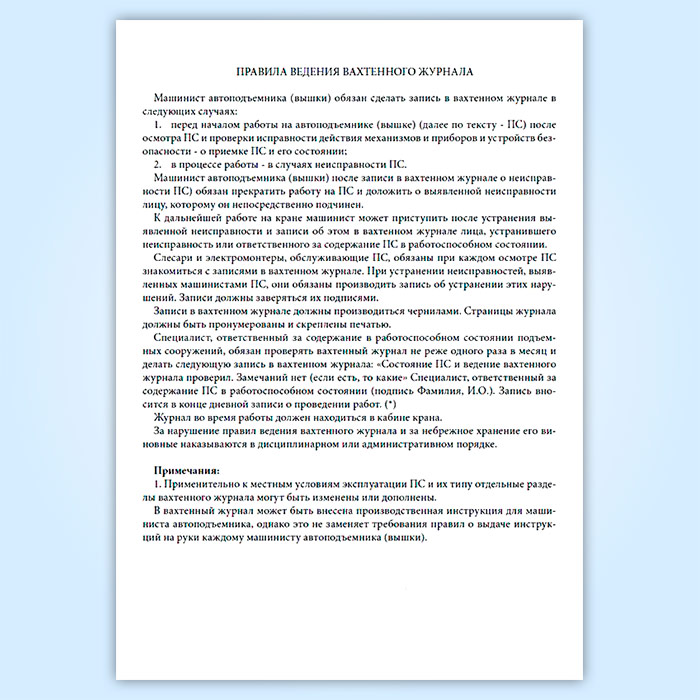 Вахтенный журнал машиниста автоподъемника (вышки) в Обнинске купить