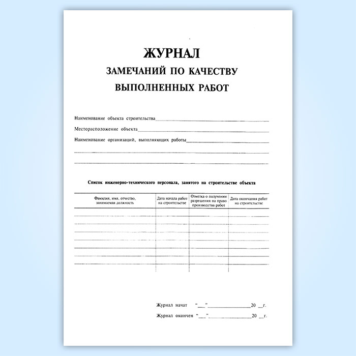 Журнал замечаний по качеству выполненных работ в Обнинске купить