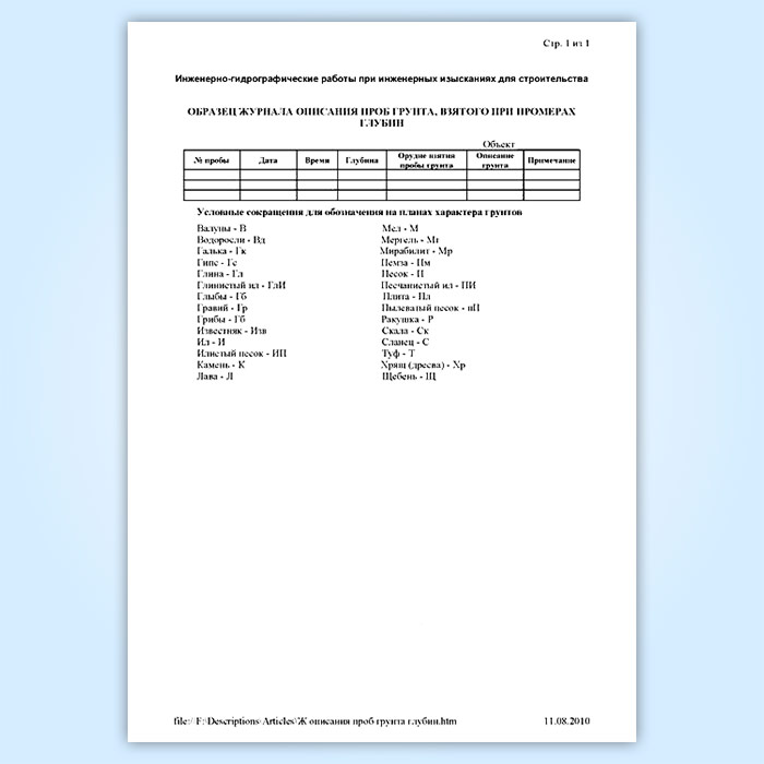 Журнал описания проб грунта, взятого при промерах в Обнинске купить