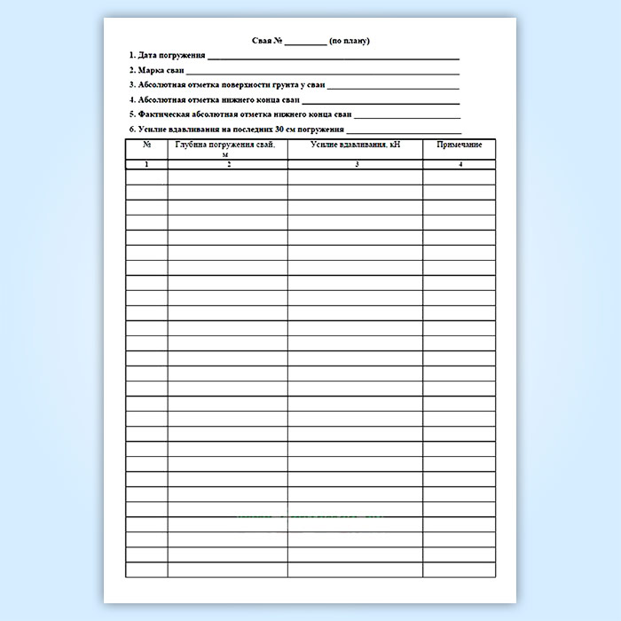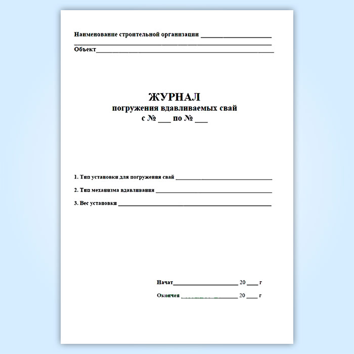 Журнал погружения вдавливаемых свай в Обнинске купить