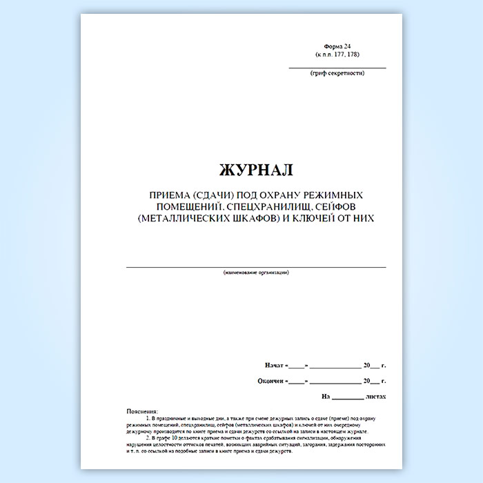 Журнал приема (сдачи) под охрану режимных помещений, спецхранилищ, сейфов (металлических шкафов) и ключей от них в Обнинске купить