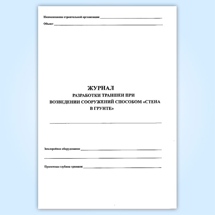 Журнал разработки траншеи при возведении сооружений способом «стена в грунте» в Обнинске купить