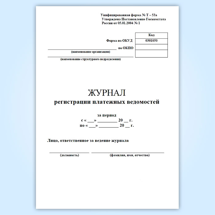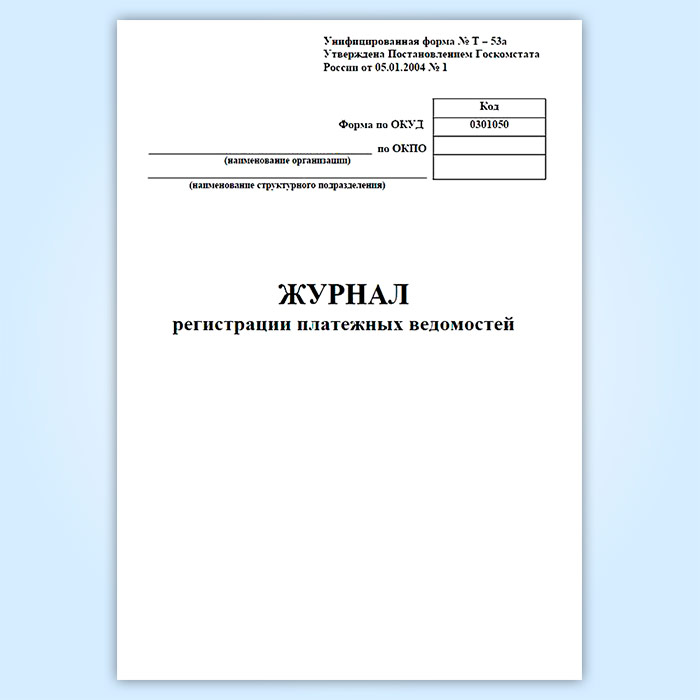 Журнал регистрации платежных ведомостей (унифицированная форма № Т-53а, форма по ОКУД 0301050) в Обнинске купить