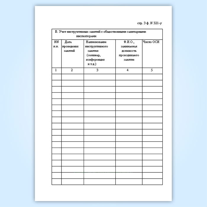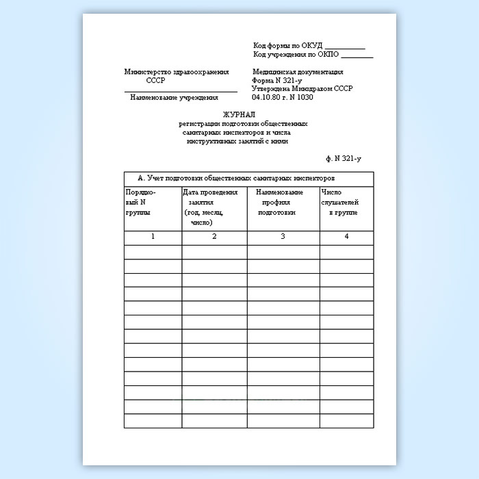 Журнал регистрации подготовки общественных санитарных инспекторов и числа инструктивных занятий с ними (форма № 321-у) в Обнинске купить